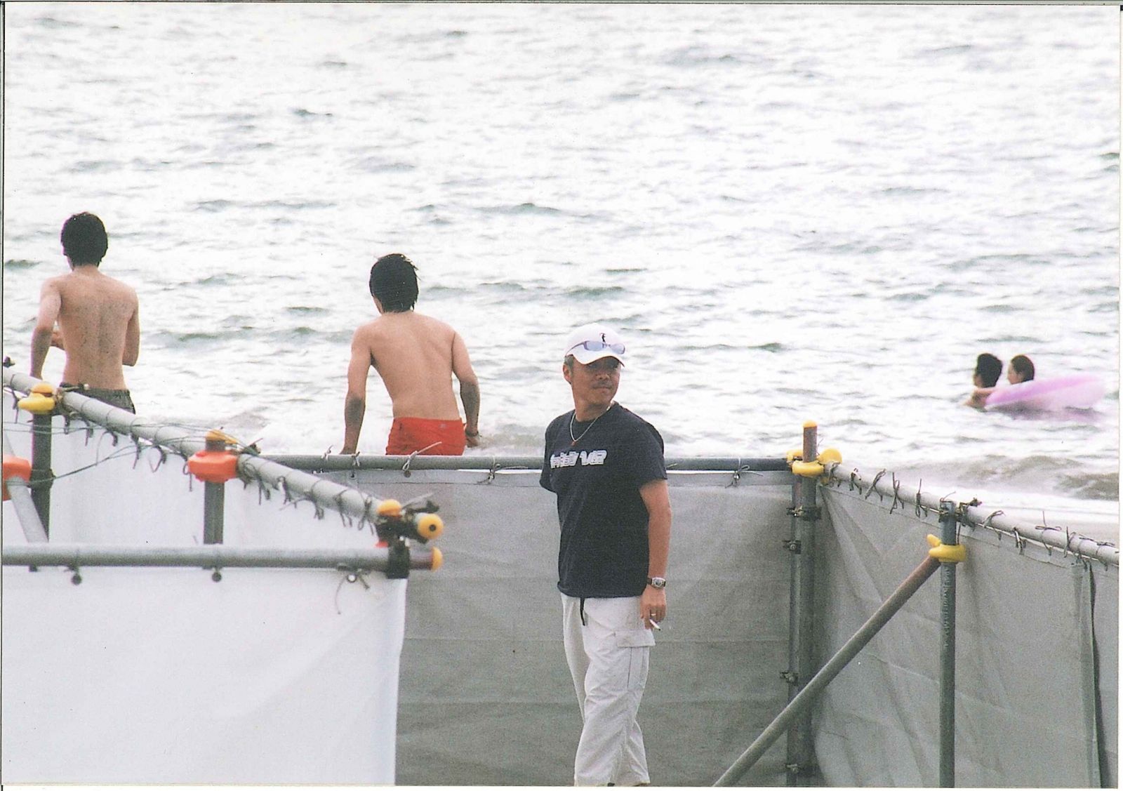 懐かしい時ですね···暑い暑い夏の日、海風の中は日焼けしましたよね(笑、汗) チンペイさんの手にタバコ···リハーサルの合間ですか!?お顔は出てるようですが外から見えてたのかしら(笑)泳ぎたくなってましたか? お顔を見たくて最大に拡大して見ています(笑)